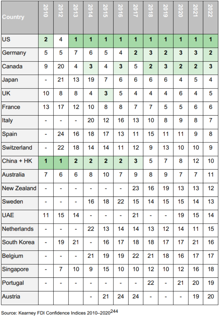 国外直接投资,即指外国直接在大陆建设研究中心。统计人员根据科研实力、国家投资、学术水平等维度,分析了国外投资水平。根据结果,欧洲一马当先,美国也相对集中,中国与之差距较大。