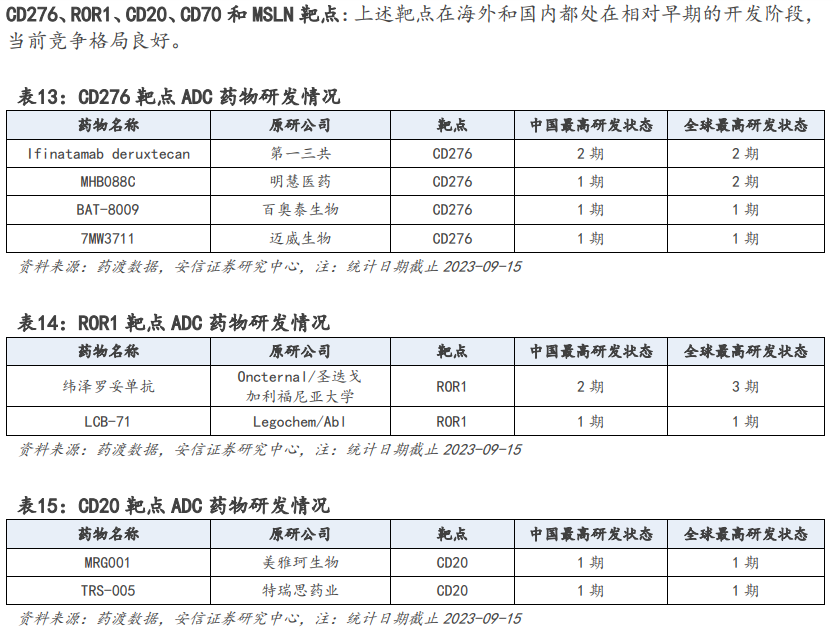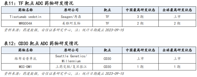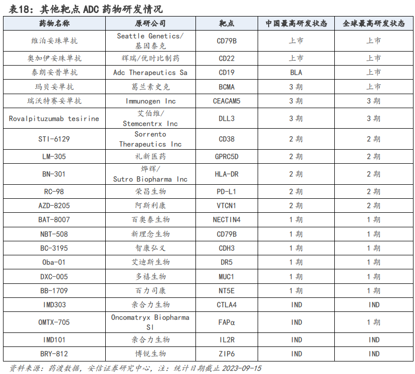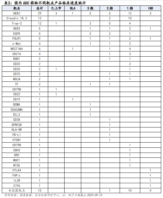 近期,安信证券发布报告,梳理了国内ADC药物靶点竞争格局,报告主要以表格形式呈现,较为直观。
