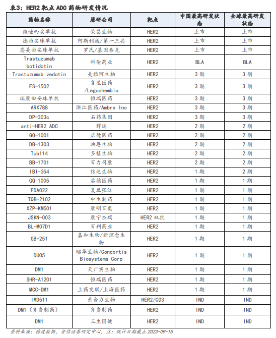 HER2竞争最为激烈,国内上市的药物也最多,同时面对王者德曲妥珠单抗的压制,一些处于早期临床阶段的企业则选择了布局HER2双抗ADC。