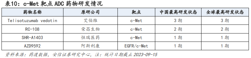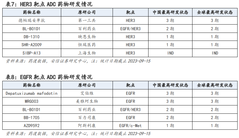 HER3, EGFR, FOLR1和c-Met靶点进展到3期的多为海外公司,国内企业多处于1,2期。