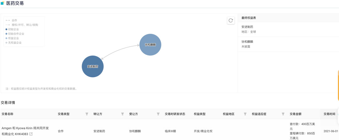 2021 年 6 月,安进以 4 亿美元首付款和 8.5 亿美元的里程碑付款引进 Rocatinlimab。