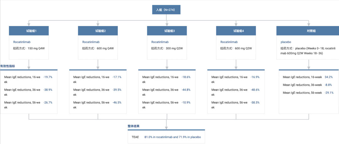 此前公布的 II 期临床试验(登记号:NCT03703102)结果显示,在中重度特应性皮炎患者中,接受 Rocatinlimab 皮下注射 16 周后,患者的特应性皮炎严重程度具有渐进式、显著的改善,且大多数患者在停止治疗后,治疗结果仍持续维持。详见下图:
