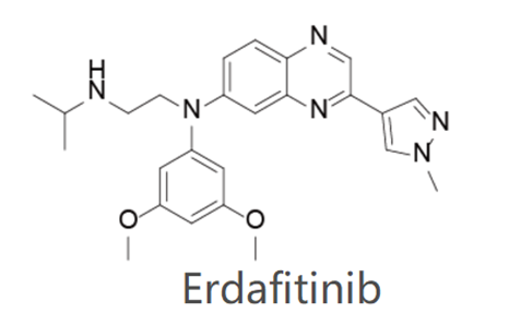 FDA获批具体适应症:厄达替尼用于治疗携带有FGFR2或FGFR3突变的铂类化疗后疾病进展的局部晚期或转移性膀胱癌成人患者,包括新辅助或辅助铂化疗12个月内的患者。