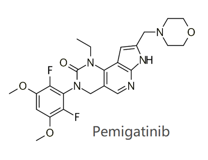 Pemigatinib(佩米替尼/培美替尼)是由Incyte Corp研发的一款小分子药物,是一种FGFR1-3拮抗剂。目前,该药物最高研发阶段为批准上市,用于治疗胆管癌、胆管上皮癌和胆道癌。这是中国首款获得批准上市的FGFR抑制剂,为我国晚期胆管癌成人患者带来新选择。