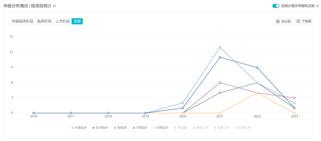 据 Insight 数据库显示,国内 KRAS G12C 抑制剂的申报自 2020 起步,2021 达到最高峰,接下来的 2022 亦是热度不减。