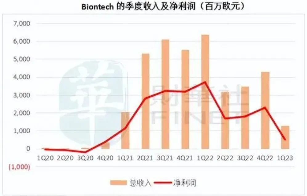 尽管推出了迭代疫苗组合,疫情影响的褪去,让BioNTech收入和利润的急速下滑:2023上半年,公司总营收14.45亿欧元,同比下降84.9%。