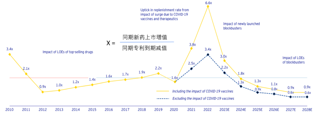 图.新药上市增值/专利到期贬值 来源:EY analysis