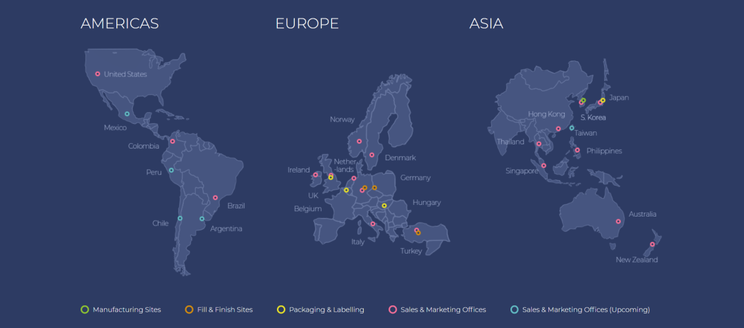 以下是Celltrion的全球直销和销售网络: