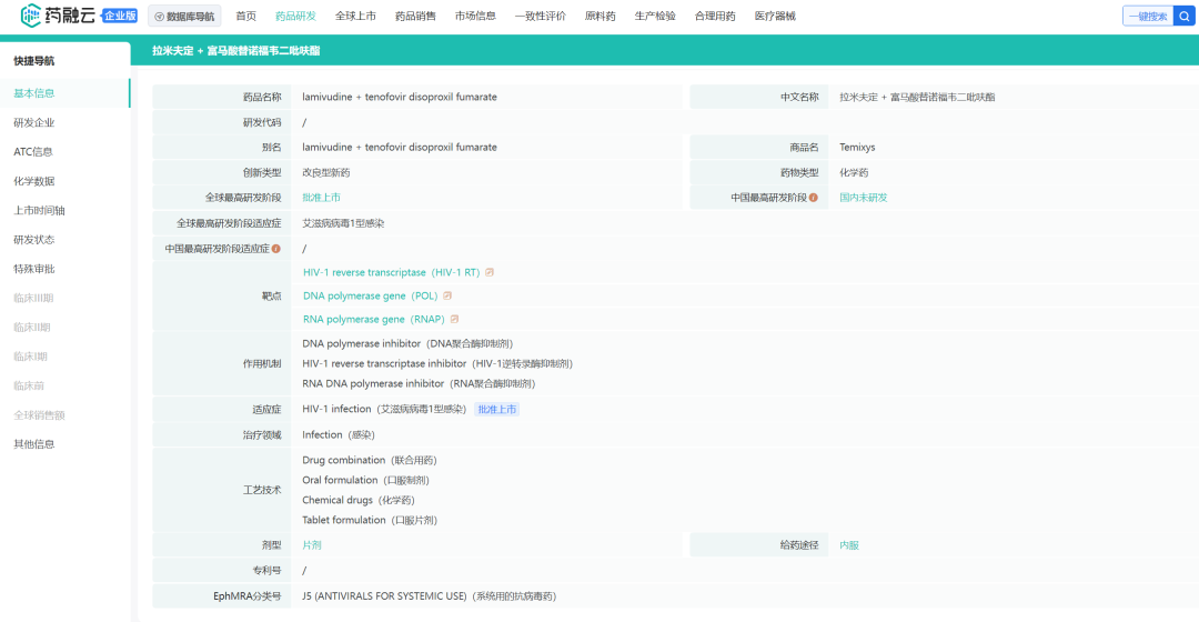Celltrion生产的化药主要有Temixys(拉米夫定+富马酸替诺福韦二吡呋酯)、Albothyl(聚甲酚磺胺)、Whituben(对乙酰氨基酚)、Edarbi(阿齐沙坦)、Actos(吡格列酮)、Nesina(阿格列汀)、地拉罗司、普瑞巴林、利奈唑胺、替诺福韦、拉米夫定、多替拉韦。其中比较有代表性的是Temixys,主要用于艾滋病病毒1型感染,于2018年获得FDA批准。当前在国内未申报研发。