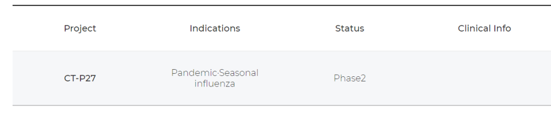 CT-P27主要针对甲型流感病毒,当前研究进行到临床试验3期。