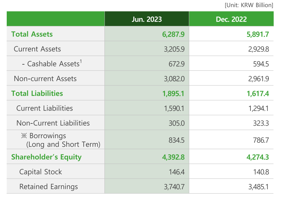 据统计,截至2023年6月30日,Celltrion总资产为62879亿韩元(46.91亿美元),其中流动资产32059亿韩元(23.92亿美元),非流动资产30820亿韩元(23.00亿美元)。