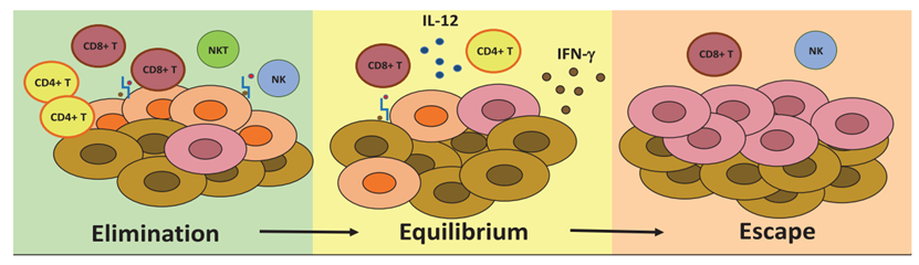 根据免疫编辑理论,癌症发展需要经过免疫监视、免疫平衡以及免疫逃逸3个阶段,在这个过程中免疫细胞均保留有攻击并杀伤癌细胞的能力或潜力