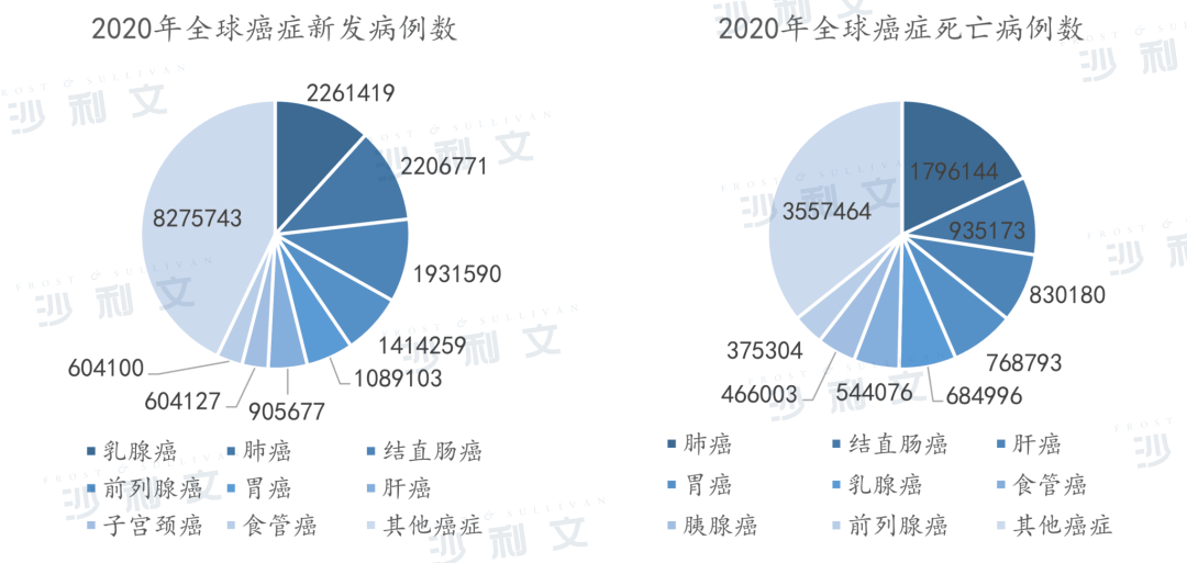 肿瘤已经成为当今世界人类预期寿命增长的最大阻碍因素之一,仅次于心血管疾病。根据世界卫生组织旗下癌症研究机构(International Agency for Research on Cancer,IARC)数据显示,2020年全球新发癌症病例数近2,000万,死亡病例数接近1,000万,不论是新发癌症病例数还是死亡病例数,实体瘤患者的占比均超过90%。