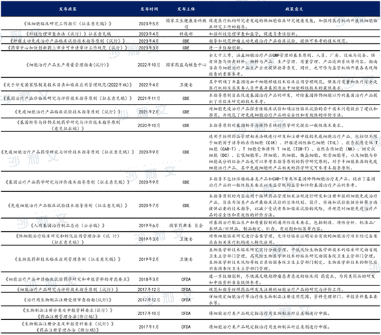 图十 2017年至2023年7月中国细胞免疫治疗领域政策盘点