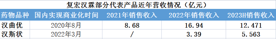 除此,另几款产品亦持续为复宏汉霖带来收入。