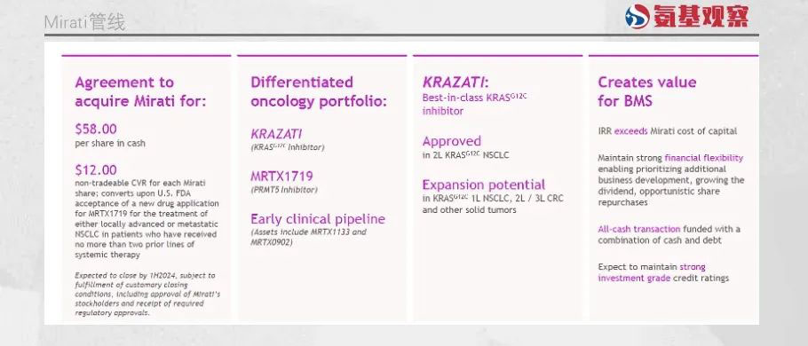 2023年10月8日,百时美施贵宝宣布将以58美元/股的价格收购Mirati,总价48亿美元。