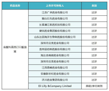 盐酸托莫西汀原研为礼来,2002年在美国上市,适用于治疗儿童和青少年(6岁-18岁)的注意缺陷/多动障碍(ADHD),是第一种被批准用于治疗注意缺陷多动障碍(ADHD)的非兴奋型药物,也是美国儿童青少年精神病协会(AACAP)推荐的治疗ADHD的一线药物。同时,《中国注意缺陷多动障碍防治指南(第二版)》推荐托莫西汀作为一线治疗用药。