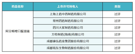 目前,阿立哌唑口服溶液剂型有6仿制药企业的7个规格的批准文号上市,视同过一致性评价。另外还有10余家仿制药企业的阿立哌唑口服溶液在审评审批中。
