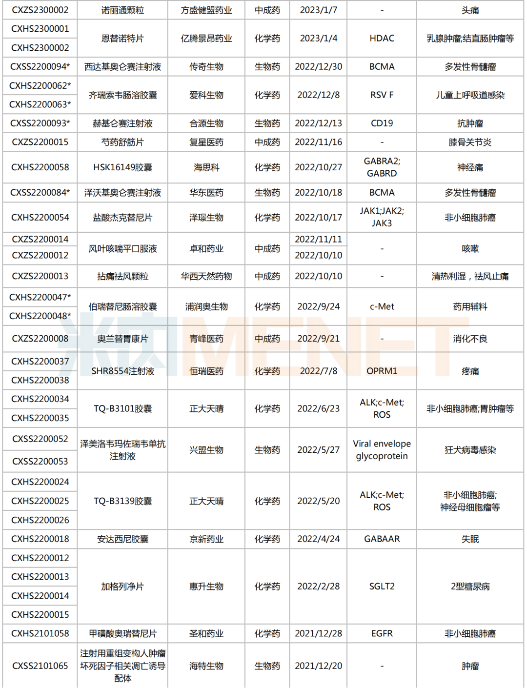 恒瑞医药:SHR8058滴眼液是从Novaliq公司引进的干眼症新药,目前国内暂无同类产品获批上市;夫那奇珠单抗注射液为人源化IgG1抗IL-17A单抗,适用于银屑病、强直性脊柱炎等,其对标产品——诺华的司库奇尤单抗2022年在中国公立医疗机构终端销售额超14亿元,同比增长158.42%;瑞格列汀二甲双胍片(Ⅰ)/(Ⅱ)均为创新DPP-4抑制剂复方降糖药,可通过两种不同作用机制达到降糖作用,且固定剂量复方制剂能减少药物漏服、及提高治疗依存性;SHR8554注射液是一款用于重度疼痛的MOR偏向激动剂,于2022年7月首次提交上市申请,是恒瑞在镇痛领域首款报产上市的1类新药。