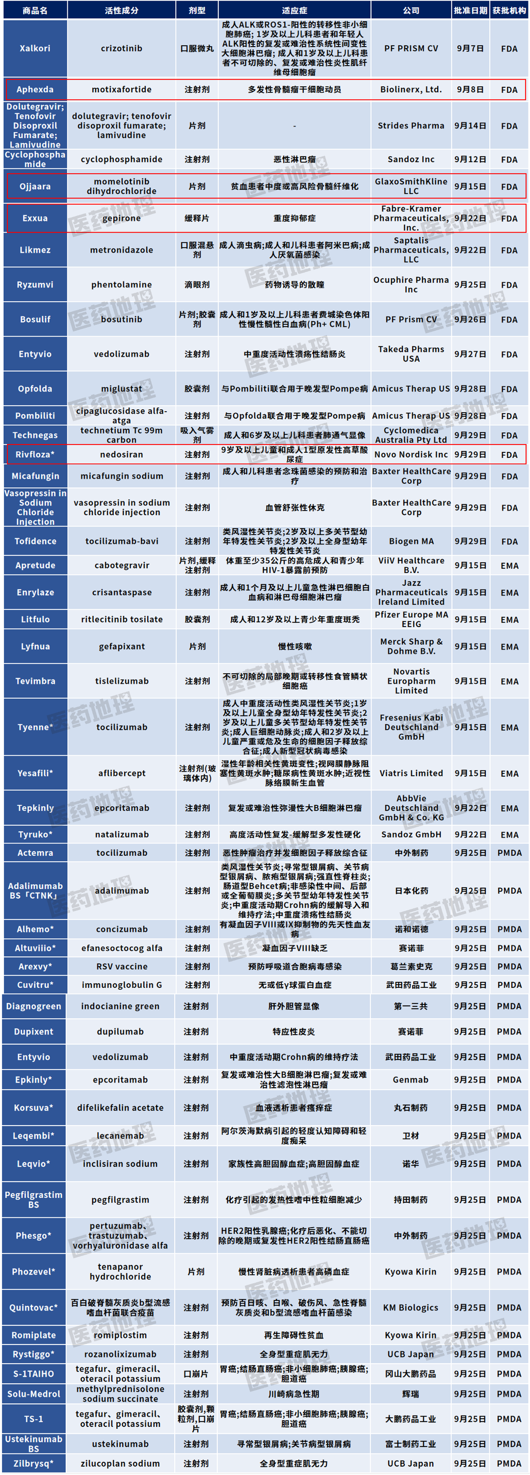 在9月份获批的药物中,我们选择其中4款重磅药物向大家介绍。