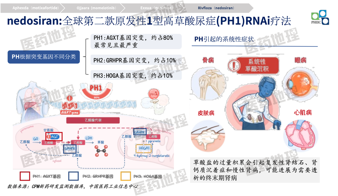 第4个药物是全球第二款获批的原发性1型高草酸尿症RNAi疗法Rivfloza(nedosiran)。