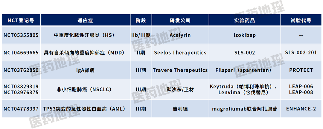 除了上文提到的一些积极的临床试验结果,在这里我们还总结了一部分终止的临床试验。