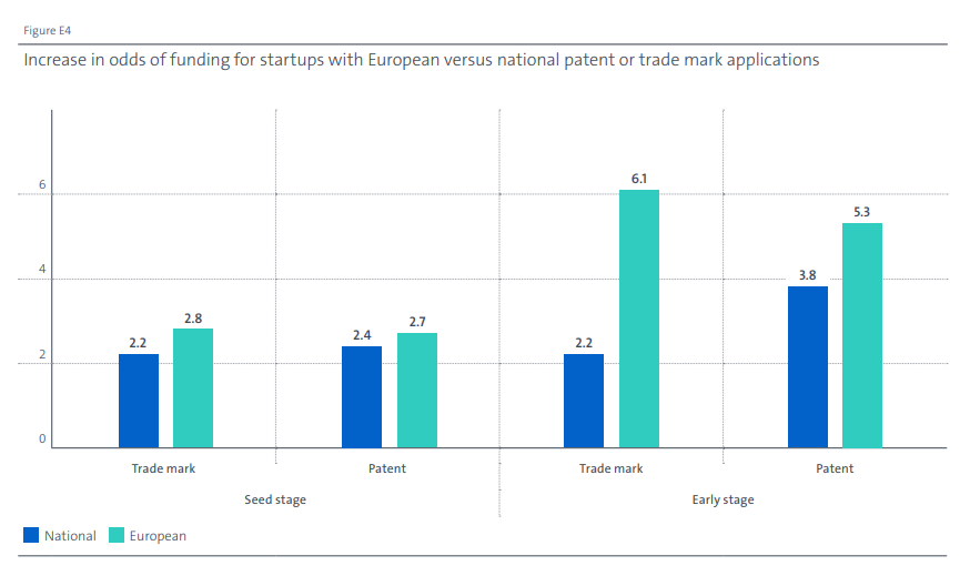 4. 申请欧洲专利和欧盟商标的初创企业后续获得风险投资的可能性更高。