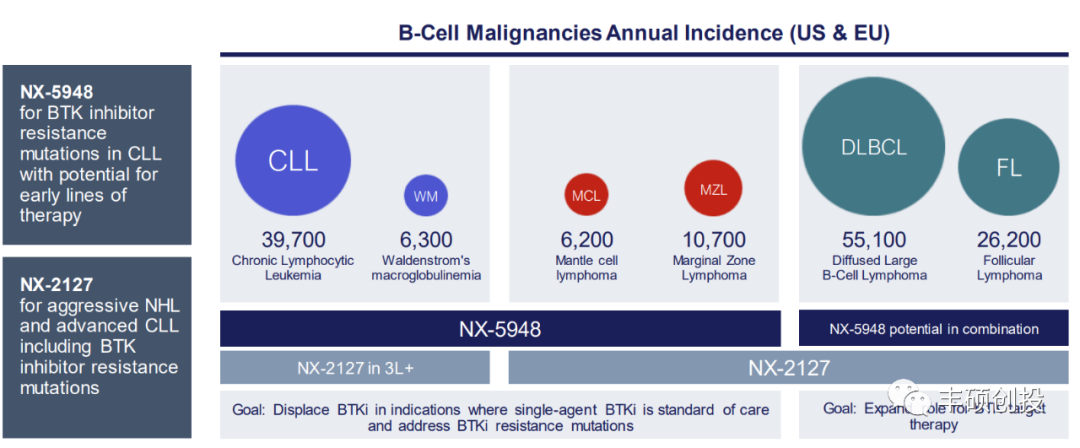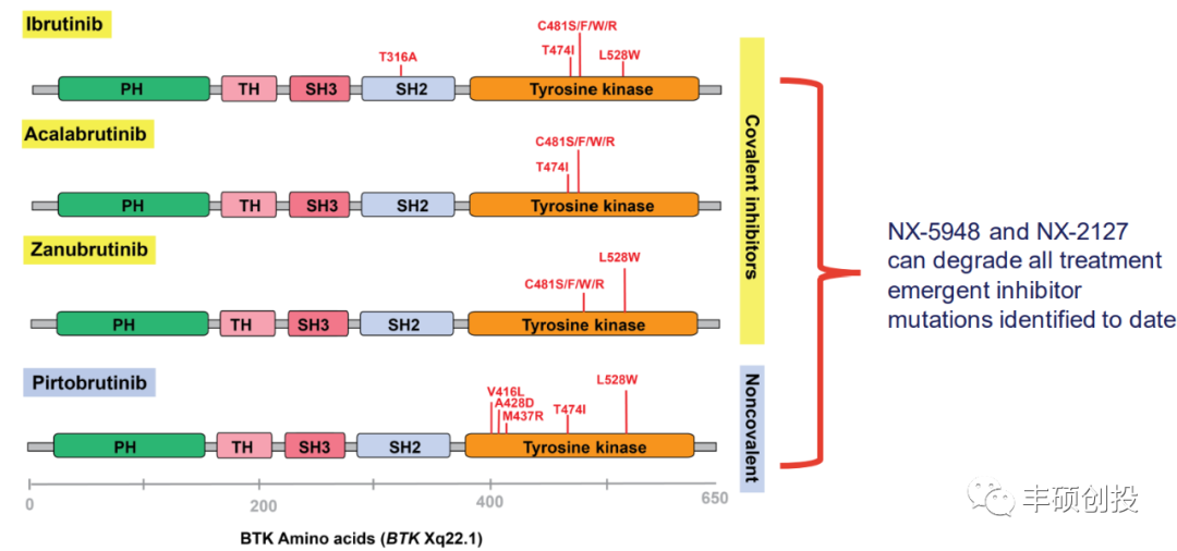图6 BTK PROTAC分子NX-2127、NX-5948覆盖的BTK突变类型与目标适应症(来源:Nurix官网)