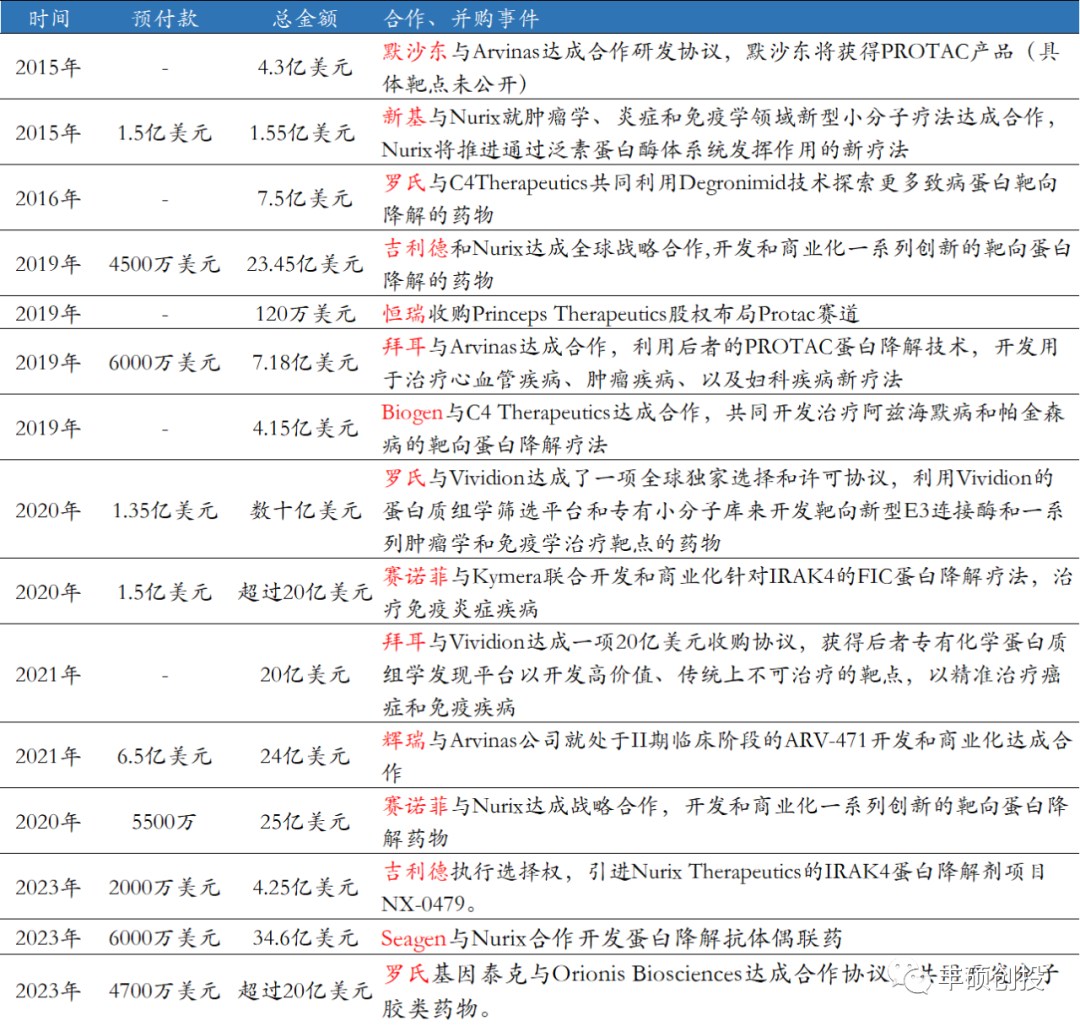 图7 跨国药企在PROTAC、蛋白降解领域的授权交易、并购事件(公开新闻,来源:丰硕创投整理)
