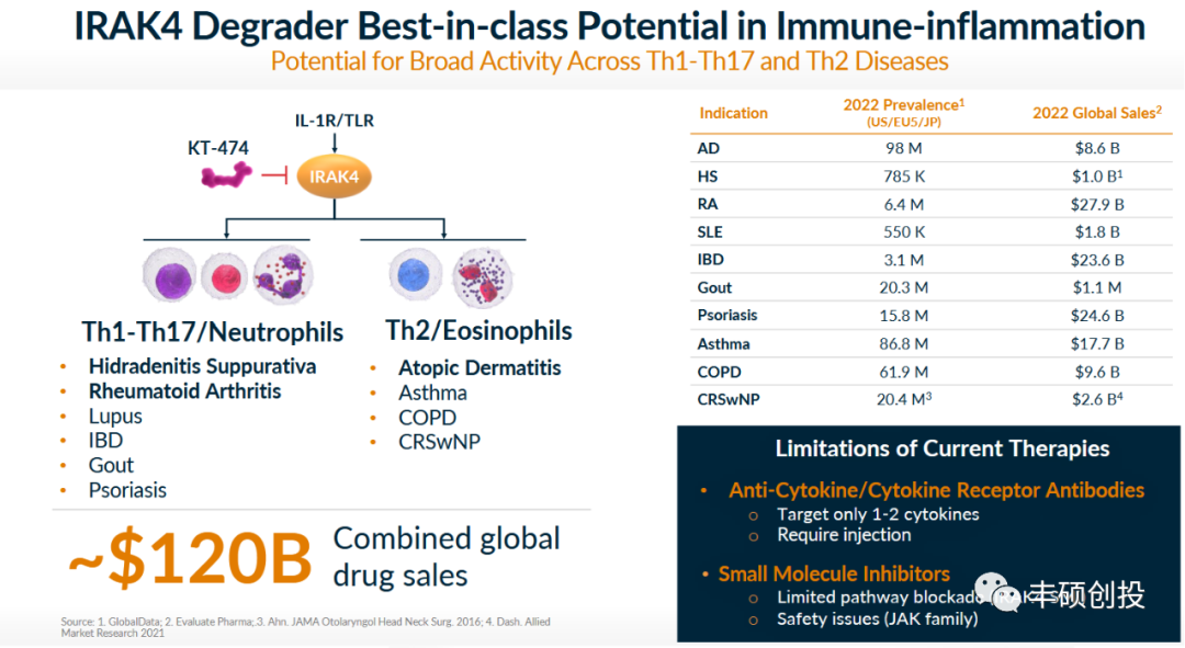 图9 IRAK4降解剂潜在适应症与市场规模(来源:Kymera公司官网)