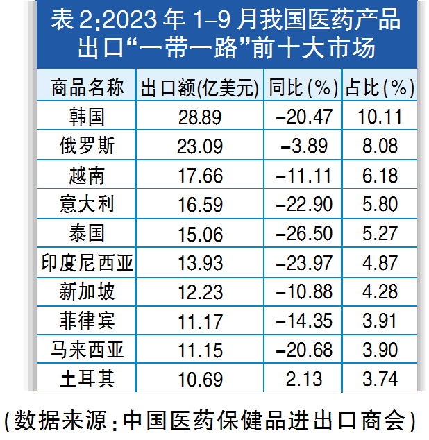 据中国医药保健品进出口商会统计,共建“一带一路”倡议提出十周年,中国医药企业在“一带一路”市场收获了丰硕成果。医药出口额由2013年的170.12亿美元增至2022年的447.22亿美元,复合年增长率为10.15%。相信在共建“一带一路”进入高质量发展的新阶段,未来将有更多中国医药创新硕果沿着“一带一路”源源不断地输送到沿线国家和地区,普惠全球。