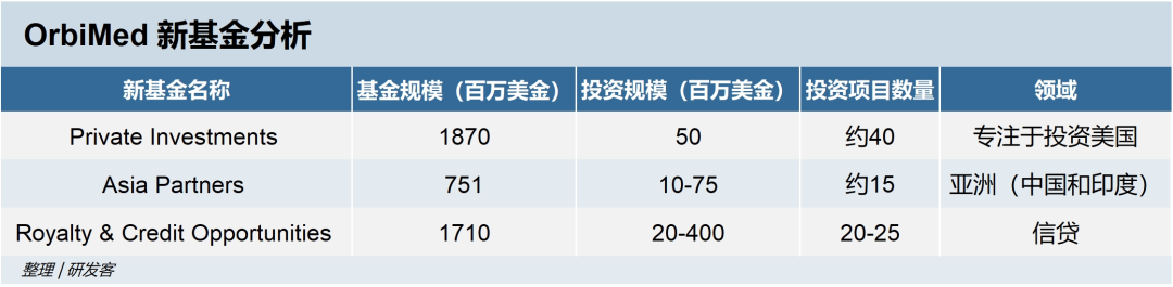 在三只新基金中(Private Investments、Asia Partners、Royalty & Credit Opportunities),Asia Partners 的基金规模和上次2021年3月完成的募资额相当,但其他两只基金则大幅增加了30%以上的融资额。