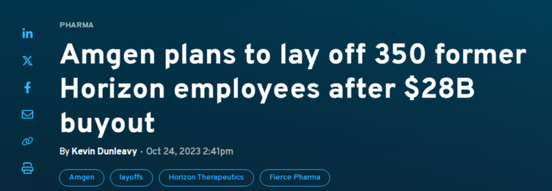 刚刚完成收购,安进就对罕见病制药公司Horizon进行裁员?