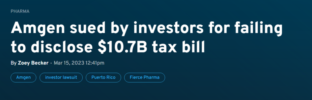 今年3月安进被一家养老基金提起集体诉讼,指控该公司拖欠超过100亿美元的税款和罚款,该诉讼指控安进违反证券法,做出虚假和/或误导性陈述、和/或未披露纳税义务。