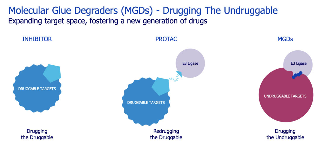 罗氏制药合作全球主管、医学博士James Sabry表示:"我们相信,分子胶降解剂是一类强大的新型小分子药物,可靶向传统方法无法解决的疾病相关蛋白。