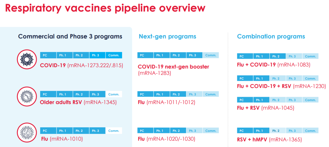 Moderna呼吸道病毒疫苗管线