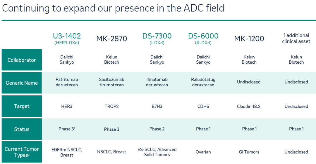 通过与科伦博泰、第一三共的合作,默沙东已经手握多款临床阶段ADC药物。