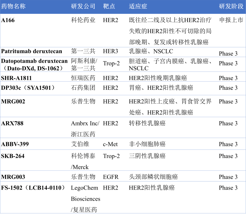 图2. 部分在研的临床3期ADC