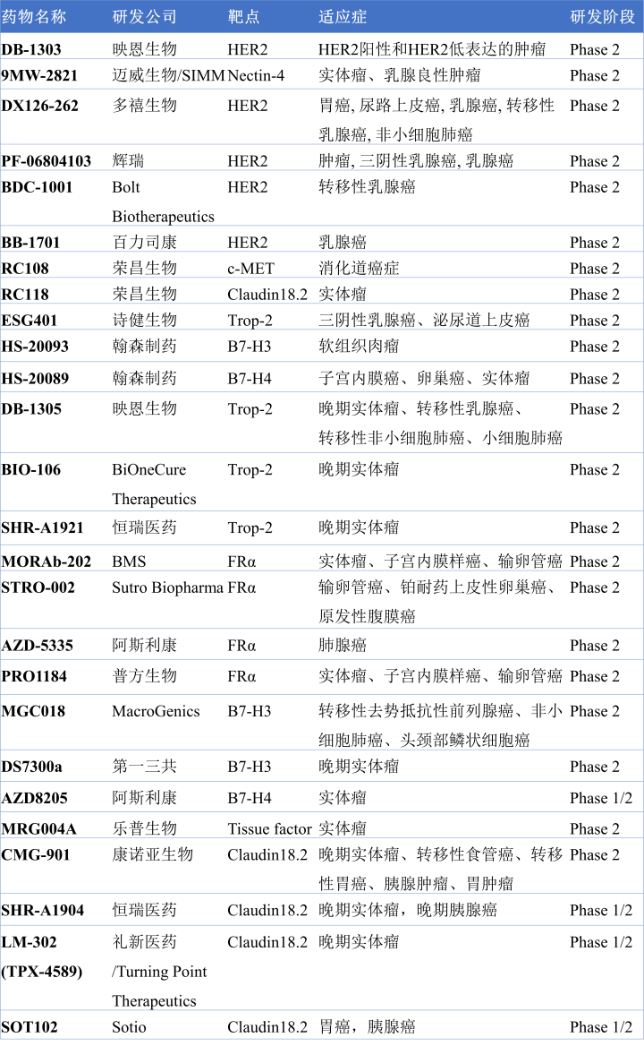 图7. 部分临床2期在研的ADC