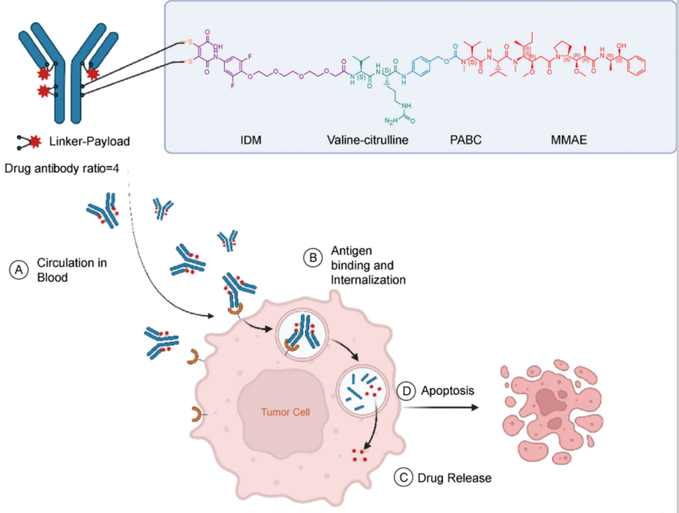 A166是由科伦药业控股子公司科伦博泰利用OptiDC平台研发的HER2 ADC,通过稳定的蛋白酶可裂解缬氨酸瓜氨酸接头将具有抗 HER2 抗体位点特异性偶联到 Duo-5(抗微管剂)上,已证明其在 HER2 阳性乳腺癌患者中的安全性和有效性。