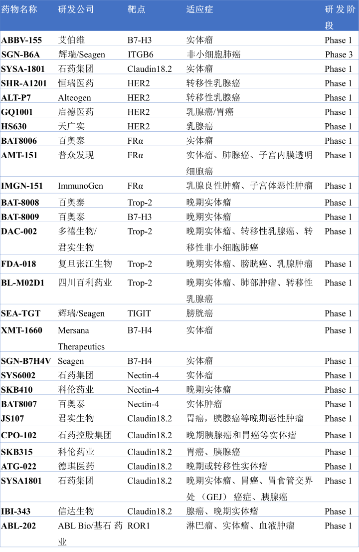 图9. 部分临床1期在研的ADC