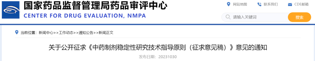 为贯彻落实《中共中央 国务院关于促进中医药传承创新发展的意见》,满足新形势下中药研发和质量控制的要求,促进中药高质量发展,药审中心起草了《中药制剂稳定性研究技术指导原则(征求意见稿)》。经征求中心内部相关专业以及专家意见,形成征求意见稿。现在中心网站予以公示,以广泛听取各界意见和建议。我们诚挚地欢迎社会各界对征求意见稿提出宝贵意见和建议,并及时反馈给我们,以便后续完善。征求意见时限为自发布之日起一个月。您的反馈意见请发到邮箱:zyyxzdyz@cde.org.cn (邮箱名为“中药药学指导原则”拼音首字母),并在标题中注明“中药制剂稳定性研究”。感谢您的参与和大力支持。