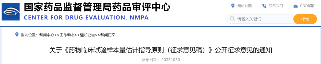样本量估计是药物临床试验设计的重要组成部分,也是确保研究具有合理性、准确性、可靠性和完整性的重要手段。通常,临床试验的样本量必须足够大,以可靠地回答研究假设所针对的临床问题。鉴于临床试验样本量估计的复杂性和重要性,药品审评中心组织起草了《药物临床试验样本量估计指导原则(征求意见稿)》,现公开征求意见。欢迎各界提出宝贵意见和建议,并请及时反馈给我们。征求意见时限为自发布之日起1个月。