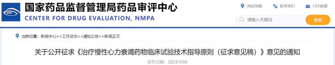 《治疗慢性心力衰竭药物临床试验技术指导原则(征求意见稿)》