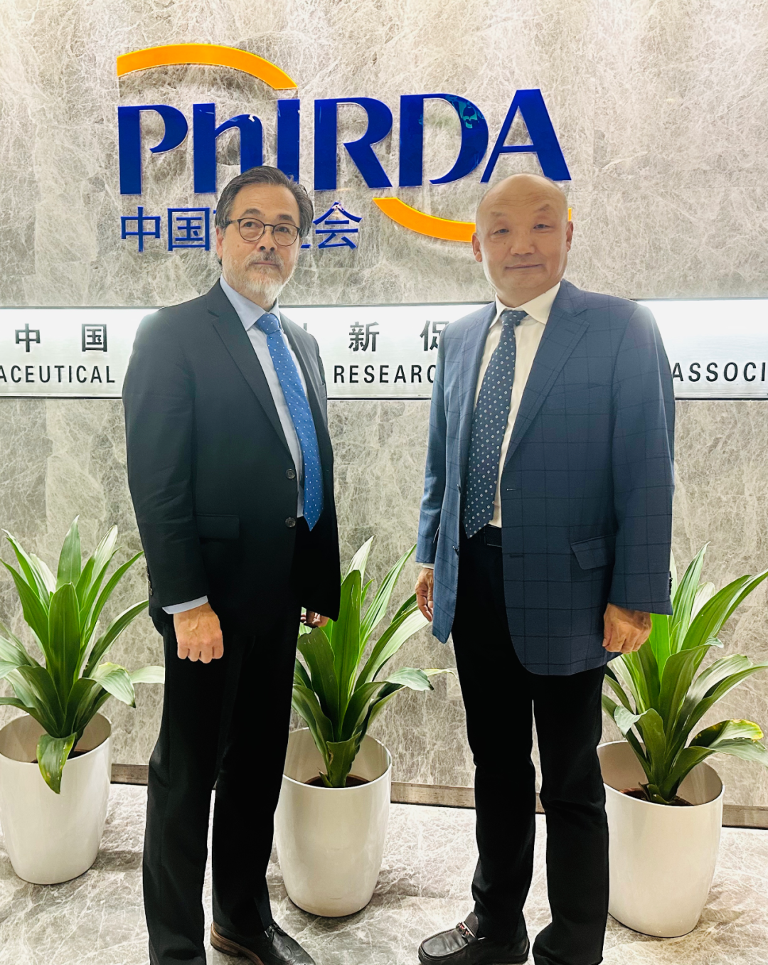 2023年10月30日下午,中国医药创新促进会(以下称“中国药促会”)执行会长宋瑞霖在中国药促会与到访的国际医药企业联盟协会(INTERPAT)中国及大中华区主席、赛诺菲高级副总裁、全球知识产权负责人John Conway先生一行进行友好会见,双方就完善中国药品专利保护制度、优化药品专利链接制度、增强国际知识产权制度交流、搭建双方合作平台等话题进行了深入交流。