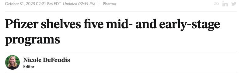 此外,公司正在削减5项临床项目,包括癌症和皮肤病试验。其中包括两个II期项目和三个I期项目,一个是局部PDE4抑制剂(PF-07038124),用于治疗牛皮癣和特应性皮炎,另一个(PF-06730512)用于治疗局灶节段性肾小球硬化,这是一种可导致肾衰竭的疾病。取消的I期项目中两个针对非小细胞肺癌,另一个针对实体瘤。