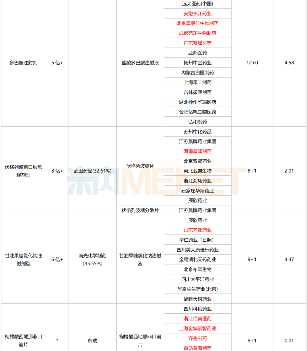 第九批集采42个品种竞争格局