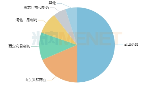 乌拉地尔注射剂新增过评企业数次之,达5家,分别为杭州云柏医药、成都利尔药业、华夏生生药业、黑龙江福和制药及陕西丽彩药业,符合申报资格企业数由8家增加至13家,最多入围企业数由6家增加至10家。这是一种选择性α1受体阻滞剂,具有外周和中枢双重降压作用,2022年在中国公立医疗机构终端的销售额接近15亿元,为最畅销的抗高血压注射剂。从厂家格局看,武田占据近50%的市场份额,罗欣药业(已过评)、西安利君制药(已过评)占比均超过10%。