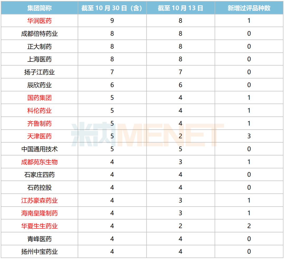 注:标红代表有新增过评企业
