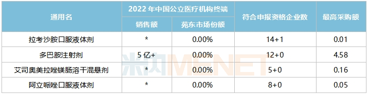 来源:米内网中国公立医疗机构药品终端竞争格局